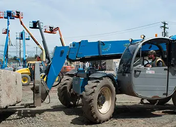 These lifts lack a vertical mast like most warehouse forklifts and are typically used on construction sites with dirt or unpaved ground. They lift materials to upper levels and have unique turning capabilities. Training for these lifts is specialized. This class also includes instruction on the standard vertical mast rough-terrain lift, which features larger tires and higher capacity.