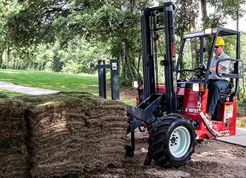 Truck-mounted forklifts are also known as Piggybacks, Donkeys, and Moffet trucks. They are designed to support construction operations, helping delivery operators unload their flatbeds in rough terrain. Truck-mounted forklifts are NOT counterbalanced and do not fall under the other training programs.